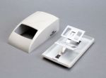 A base é única para tampas diferentes, permitindo, com isso, economizar na produção de modelos variados do dispenser para diferentes marcas de papel interfolhado (Santher e Joffel, clientes da Plajet). Observa-se que, no caso da Joffel, a forma da janela (parte alterável por meio de inserto no molde) é uma alusão à sua marca (ondas paralelas na vertical).