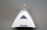 A simetria espelhada do design denota o uso duplaface do objeto, ou seja, seu acesso simultâneo por lados opostos, configuração própria das mesas de refeição. Outra inovação importante deste design em relação aos concorrentes foi fazer o dispenser resistir à queda ao chão sem abrir, e portanto sem perder a carga. Para isso, desenhei um sistema de fechamento sólido, aproveitando o visor de controle do reabastecimento do papel como botão para fazer o “clique” de fechamento/abertura da caixa plástica, a partir da flexibilidade do material empregado (polipropileno, nesta base, e poliestireno, na tampa).