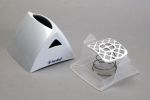 O redesenho visual foi feito, mas Redig lascou de quebra dois aperfeiçoamentos. Ele conta: “O primeiro foi ajudar a retirada do papel, fazendo a face inferior da janela ligeiramente côncava para pressionar a pilha de papel para baixo, e a face superior ao contrário, convexa, para liberar a aba da folha de cima, melhorando a pega. O segundo foi reduzir um pouco o volume total da peça (sua altura – sem reduzir a carga), para liberar espaço nas mesas. A face posterior plana atende à possibilidade de se criar uma versão do produto para uso na posição vertical.”